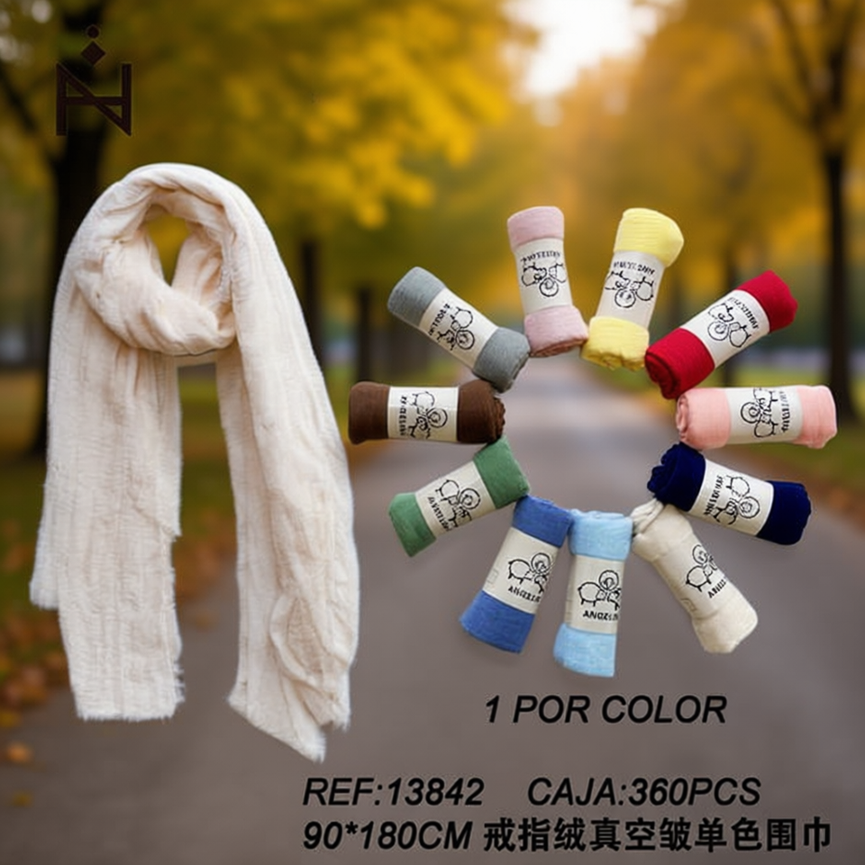Angelina Ring Velvet Scarf 90x180Cm Monochrome Vacuum Wrinkled Neckwear