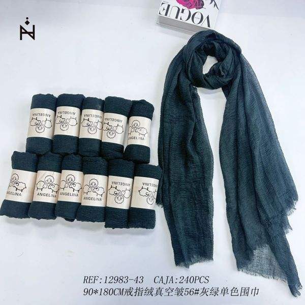 Angelina Scarf 90x180cm Grey Green Monochrome Ring Velvet Vacuum Wrinkle Fular