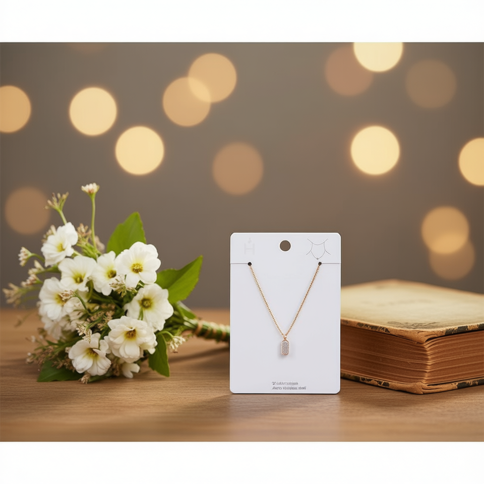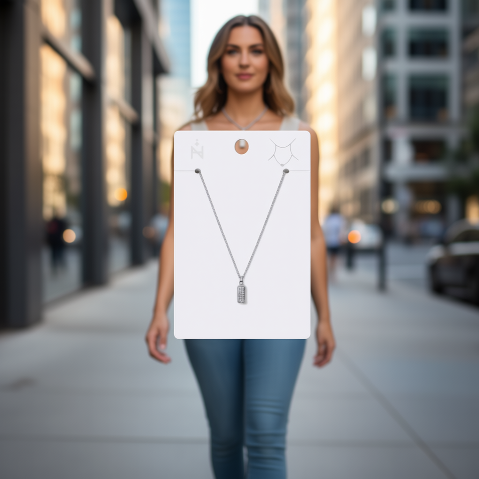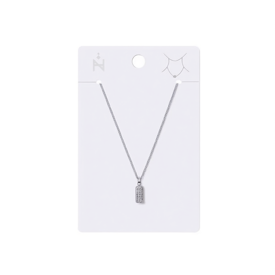 Collana con Ciondolo Angelina in Acciaio Inossidabile, Rettangolare con Cristalli e Strass, Gioiello da Donna alla Moda, Catena a Serpente con Incastonatura a Castone