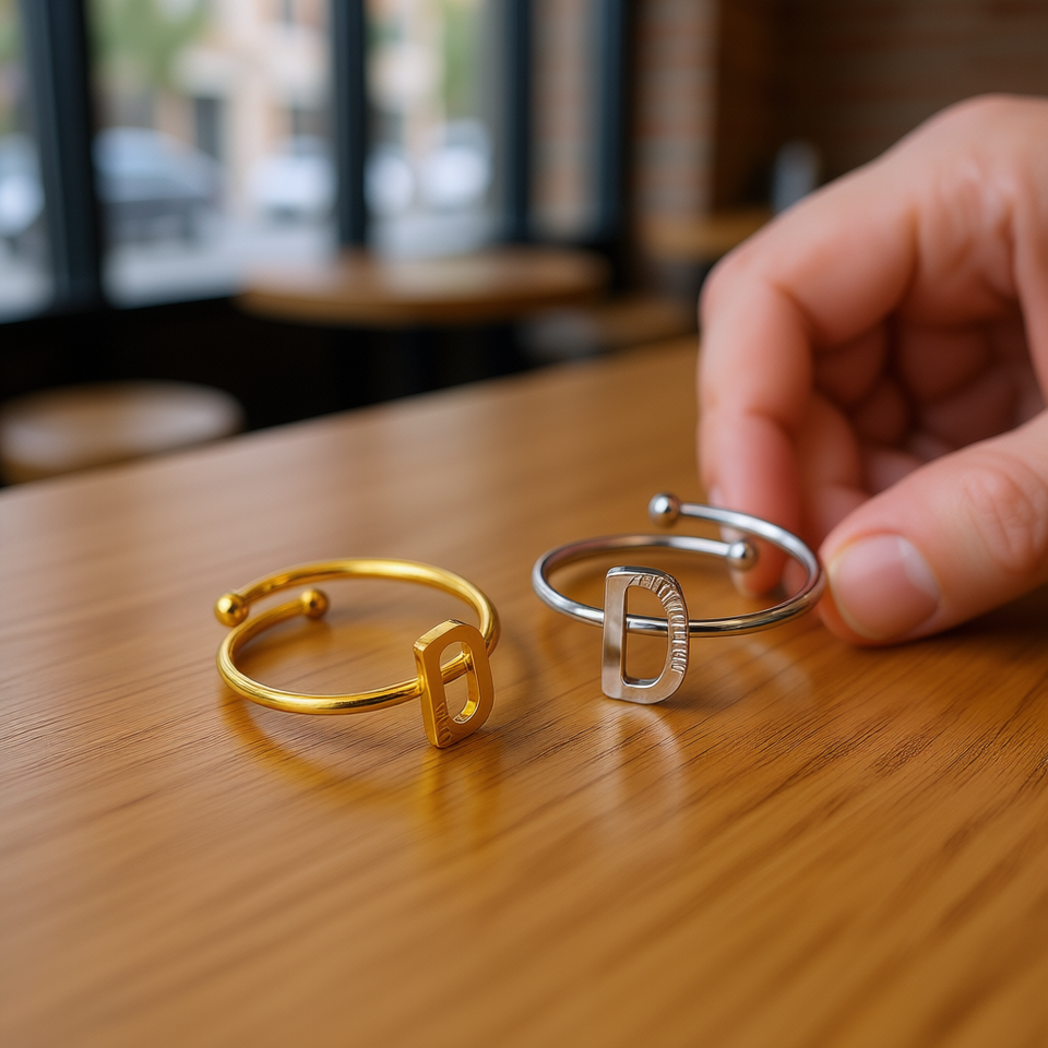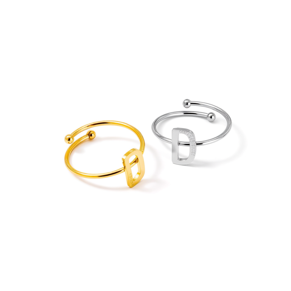 Anello Angelina in acciaio inossidabile con lettera D, regolabile, gioiello alla moda per donna e uomo