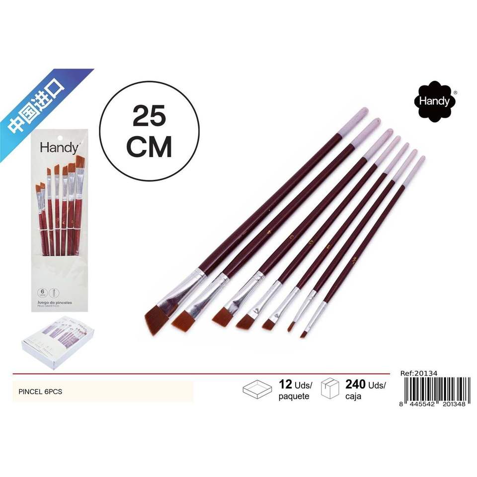 Angled Tip Artist Paint Brush Set 6-Piece Wood Handle Nylon Hair Watercolor Brush for School & Art Black Handle