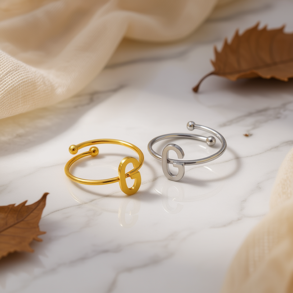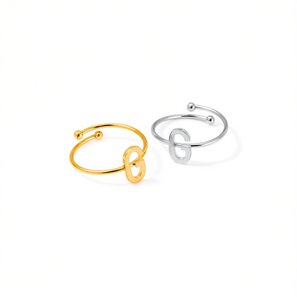 Anello con Lettera G Angelina in Acciaio Inossidabile Placcato Oro e Argento 6mm Gioiello Unisex alla Moda Regalo Quotidiano Stile Moderno