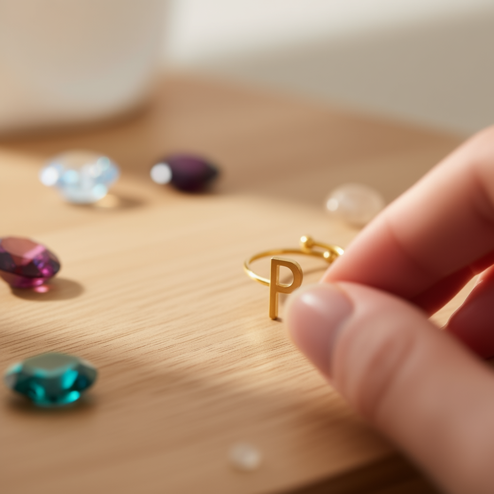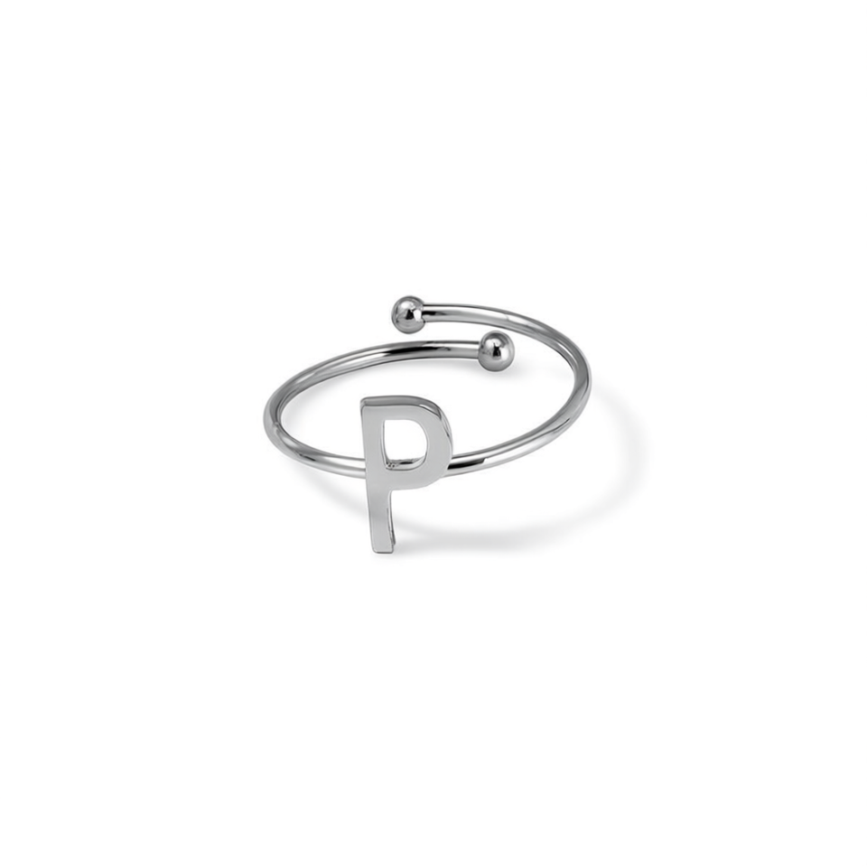 Anello con Lettera P Angelina Placcato Oro, Misura Regolabile 6mm, Gioiello Unisex alla Moda, Regalo per Uso Quotidiano, Stile Moderno