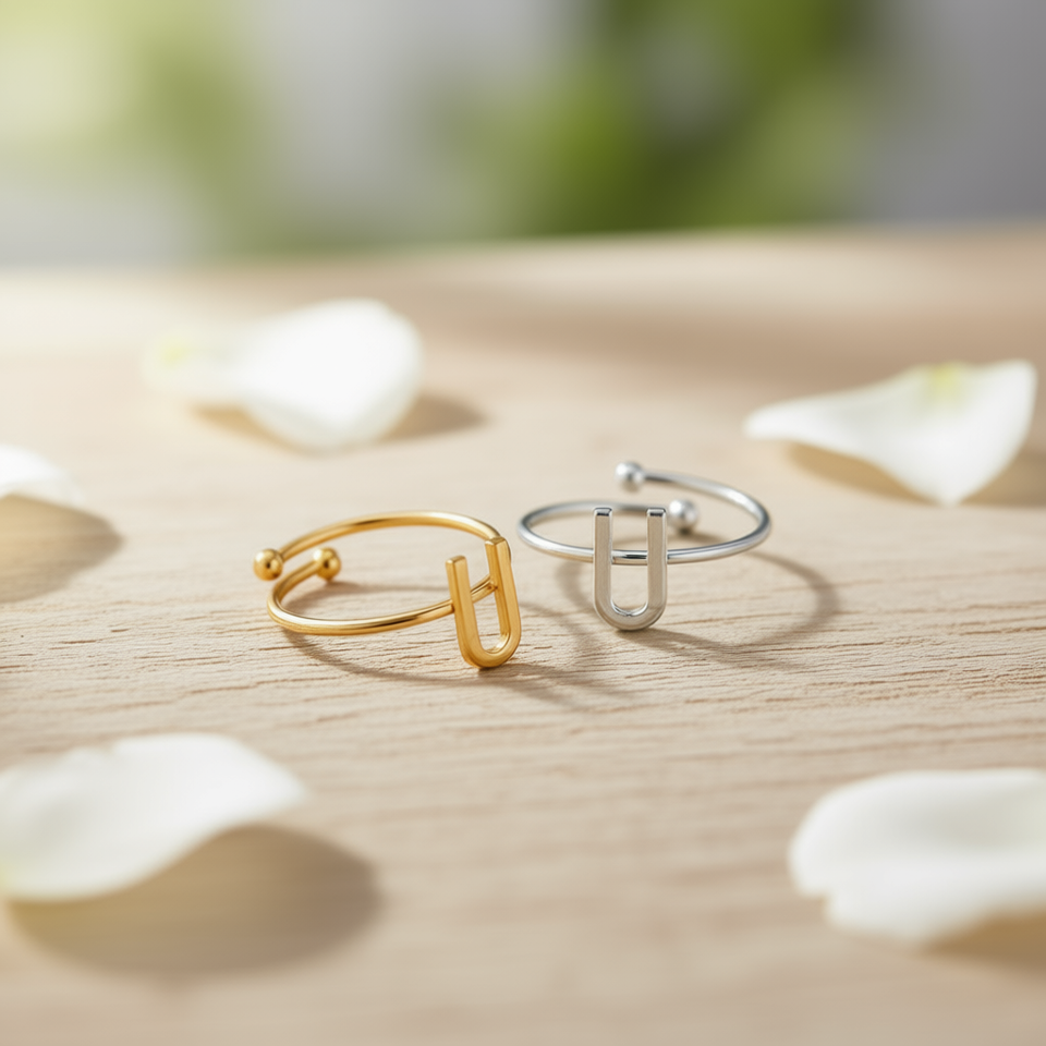 Anello a U in Acciaio Inossidabile, Gioiello alla Moda con Lettera U, 6mm, Tono Oro e Argento, Confezione da 12 Pezzi