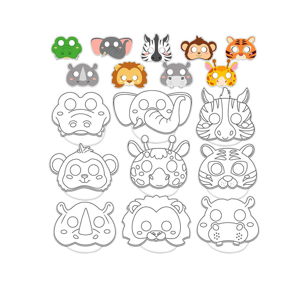 Maschere da colorare con animali colorano il tuo artigianato di carta fai da te mascherata in bianco per feste bomboniere maschere per il viso per bambini