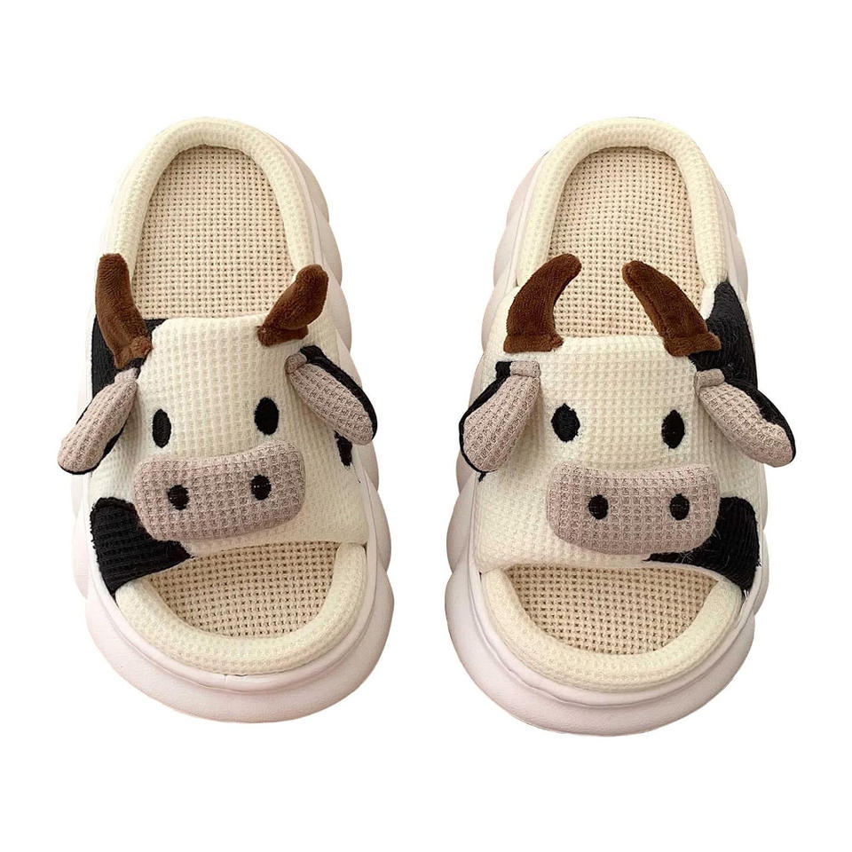 Pantofole animali mucca per le donne sfocate scarpe Kawaii Super caldo soffice suola antiscivolo leggero cartone animato mucca pantofole