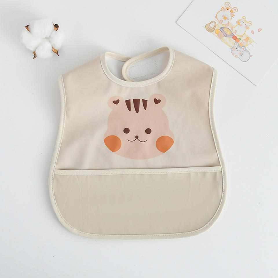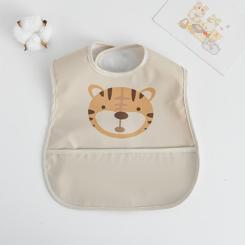 Animal Head Print Soft PU Kids Bib Adjustable Snap Closure Waterproof and Comfortable for Messy Eaters Kids PU Sleeveless Bib