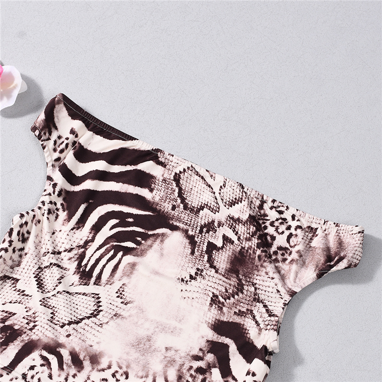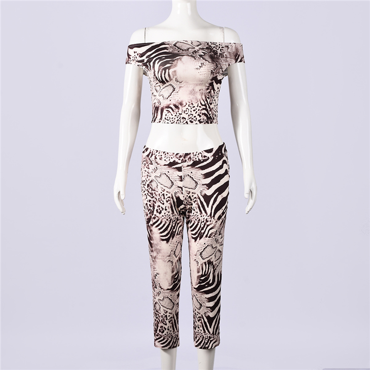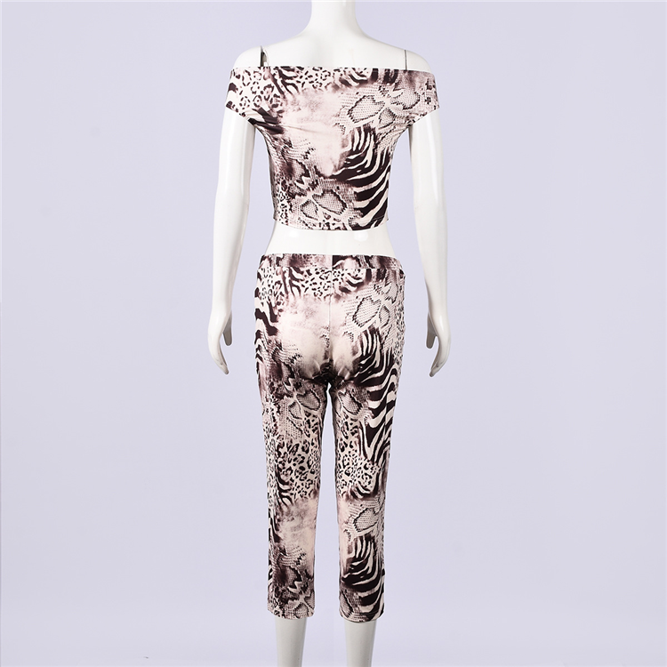 Completo coordinato due pezzi sexy con stampa animalier: top a spalle scoperte e leggings, set estivo alla moda da donna