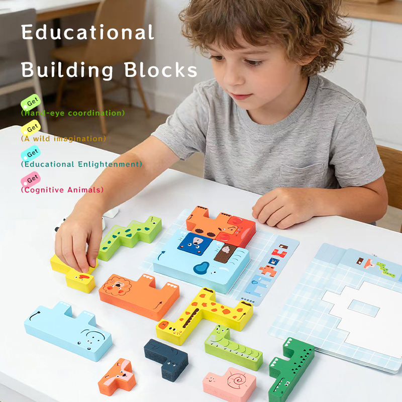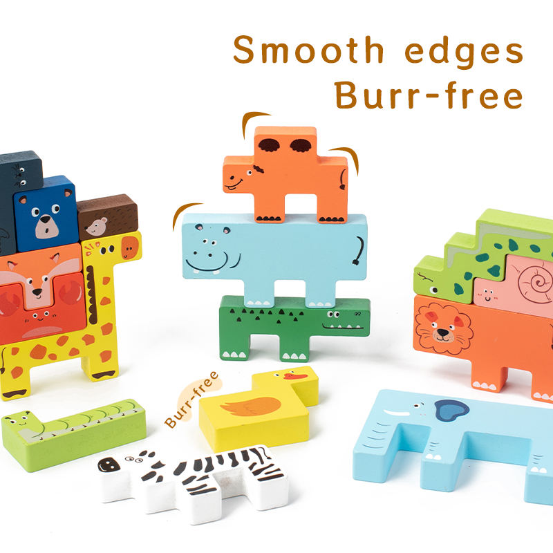 Set di Blocchi in Legno a Forma di Torre di Animali, Gioco Educativo Montessori per Bambini, 50 Pezzi, per Pensiero Logico e Raggiungimento del Ragionamento Spaziale