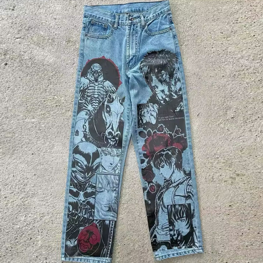 Anime Girl Print Baggy Jeans Wide Leg Trouser Harajuku Streetwear High Waist denim Pants Women