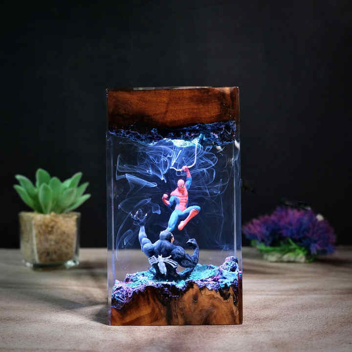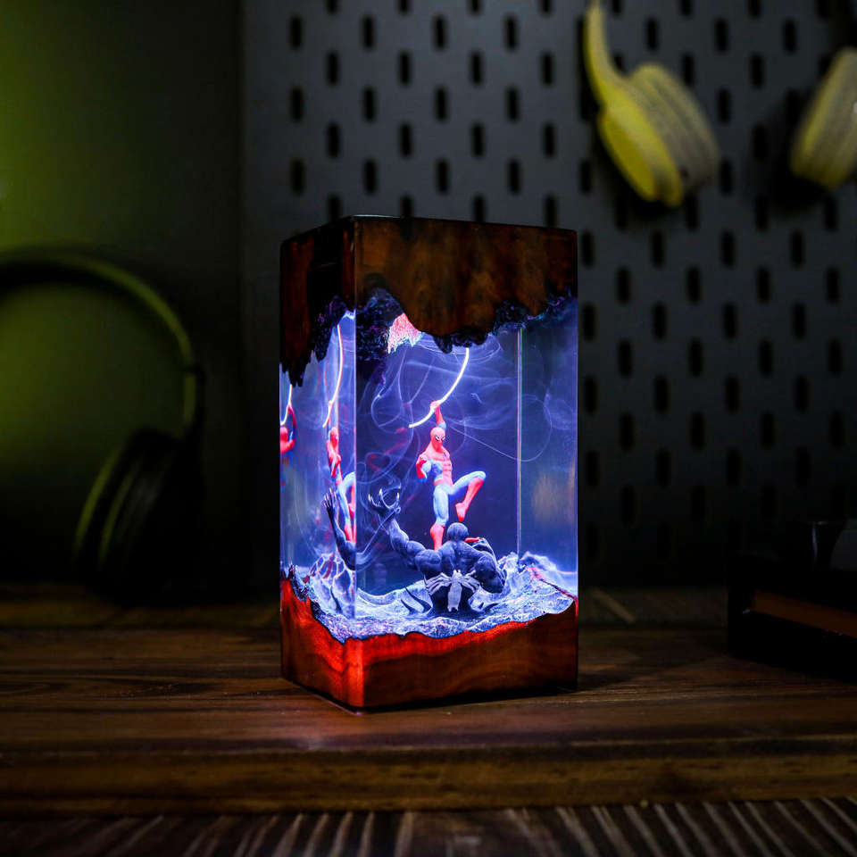 Lampada in Resina Anime Spider-Man VS Venom Luce Notturna Oggetto Decorativo Art Déco per Anniversario Regalo Perfetto per Amici