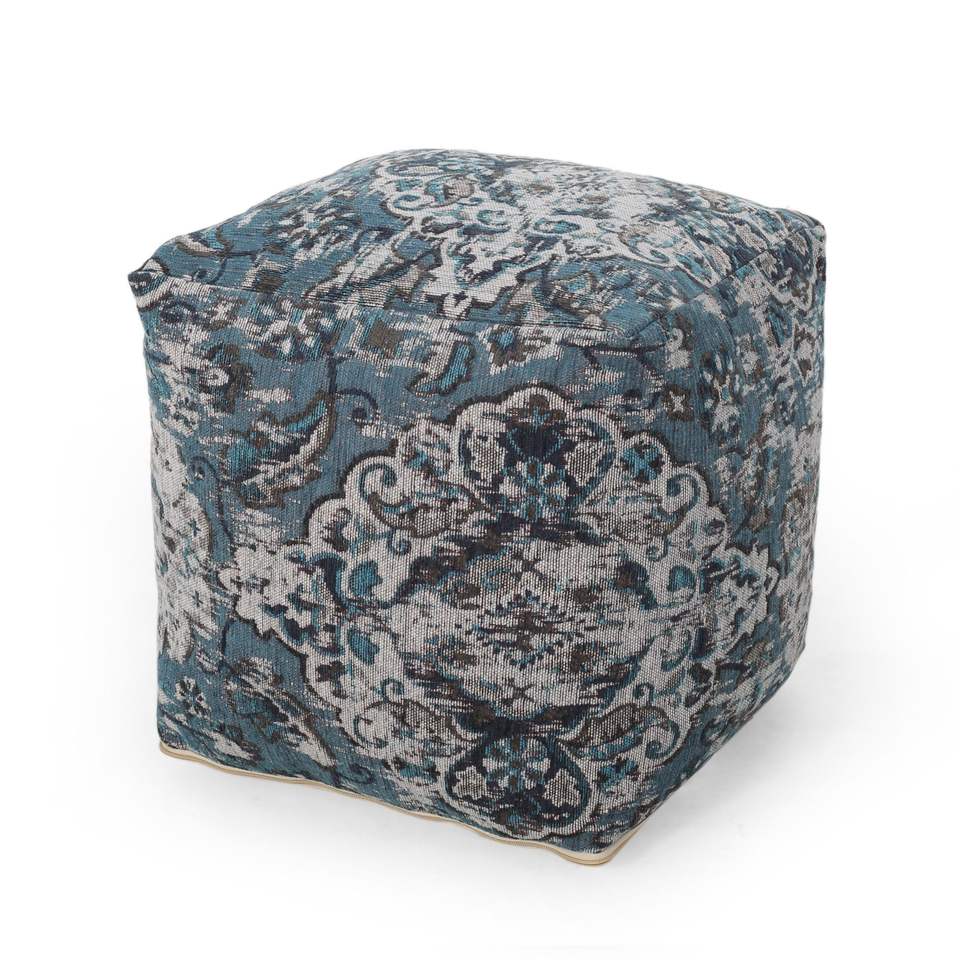 Anita Blue Square Pouf elegante sgabello o ottomana per l'arredamento della casa