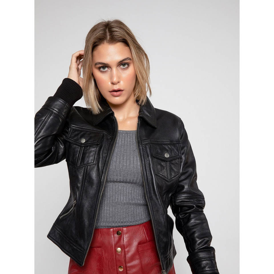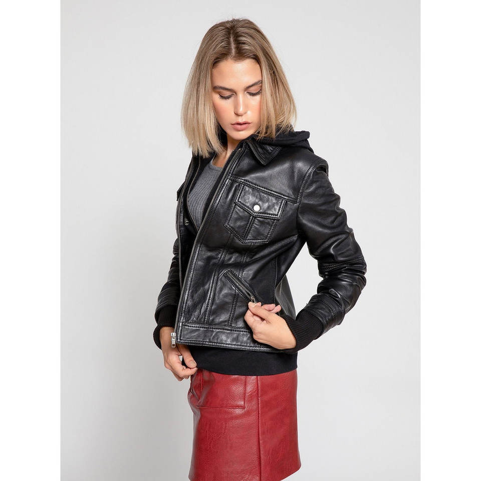 Annalise Women's Reversible Cowhide Leather Jacket Sustainable Outerwear Custom Logo Solid Style Bomber Patchwork Fur PU