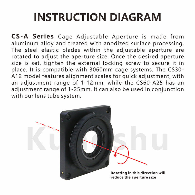 Anodized aluminum CS-A Series Cage Adjustable Aperture Iris Diaphragm for Cage System