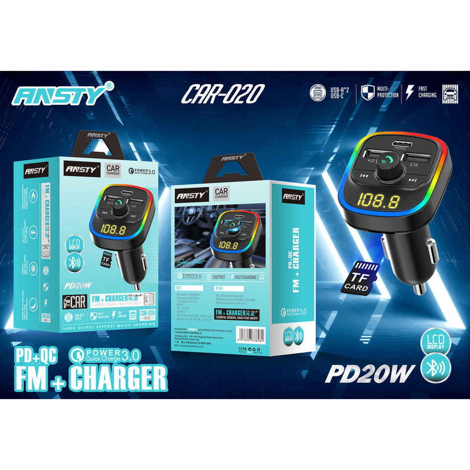 Caricabatterie per Auto Ansty CAR-020 PD20W con Radio FM, USB-C, Display LED e Ricarica Rapida