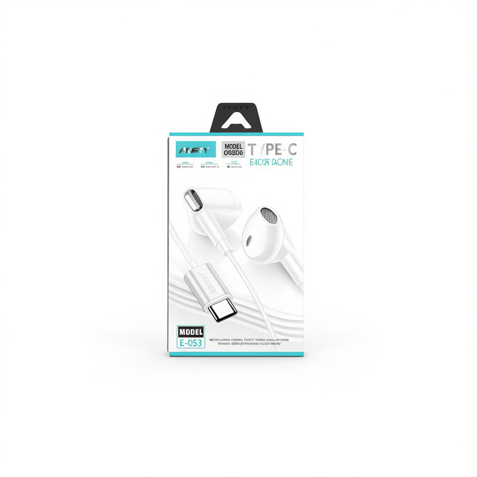 Auricolari Ansty con connettore di tipo C, modello E 053 bianco, con controllo del volume per le chiamate