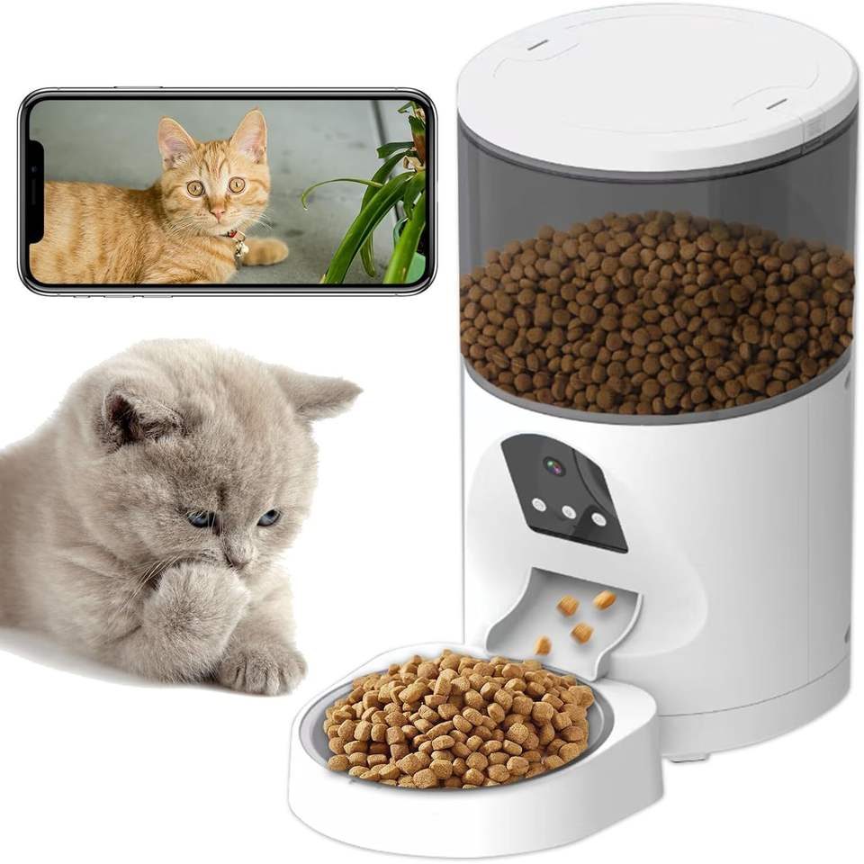 Antela Automatic Pet Feeder 6L With Camera 3MP WiFi App Control White Plastic Rounded Shape European Plug LCD Display