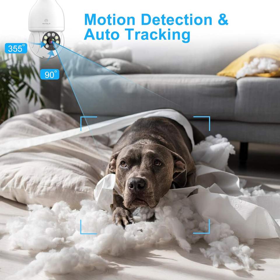 Telecamera Dome Antela 3MP WiFi per Interni con Rilevamento Movimento e Visione Notturna, Telecamera di Sicurezza in Plastica