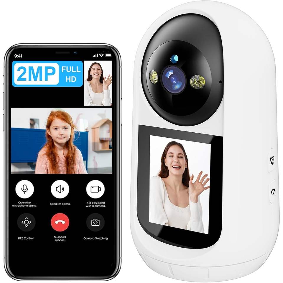 Telecamera Wi-Fi da Interno Antela 2MP Full HD, Baby Monitor con Schermo Touch, Audio Bidirezionale, Rotazione e Inclinazione, Sicurezza Domestica