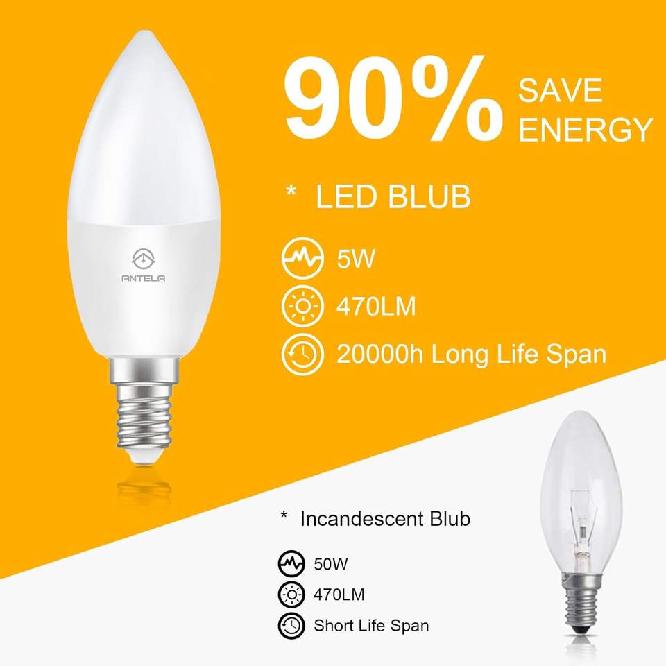 Antela Led Bulb E14 5W 4000K Neutral White 470LM B11 Plastic Body Manual Switch Long Life 15000H 3-Year Warranty