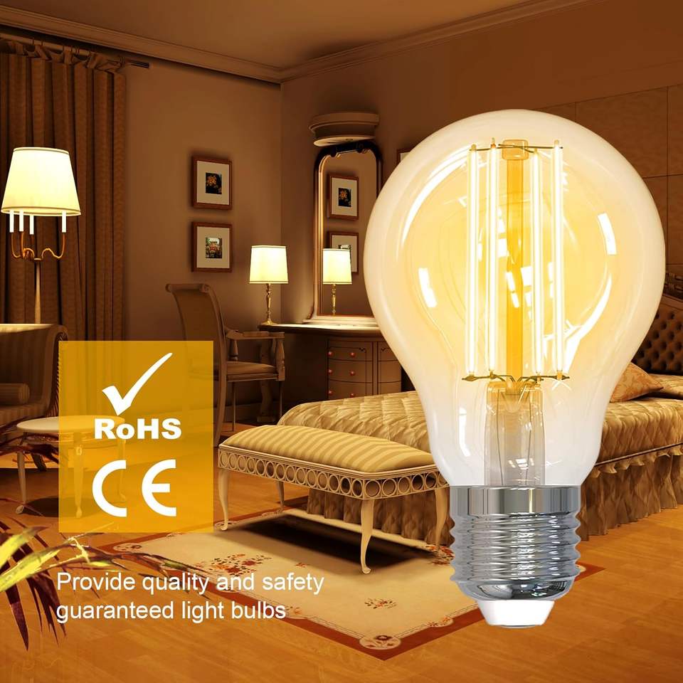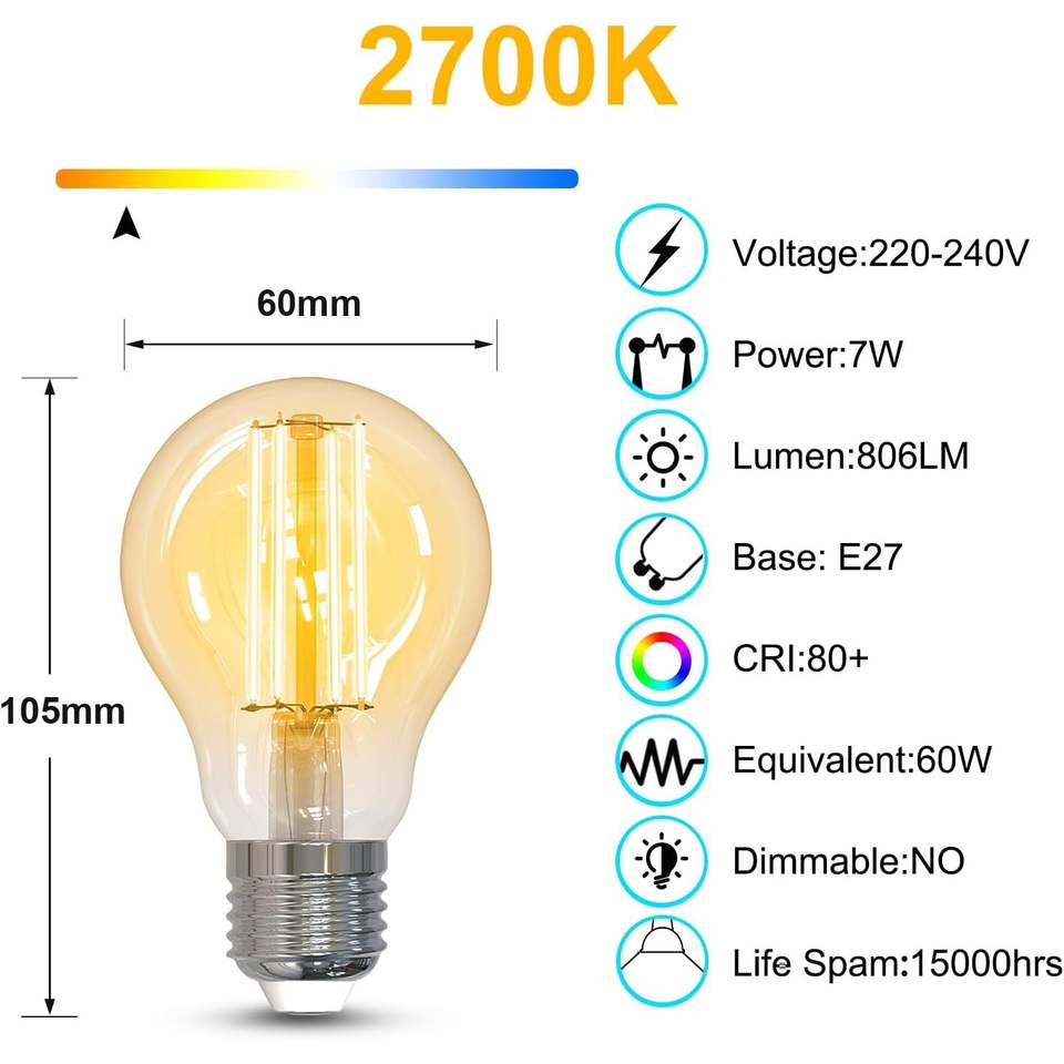 Lampadina LED Antela E27 7W A19 Bianco Caldo 2700K Non Dimmerabile in Vetro Confezione da 6