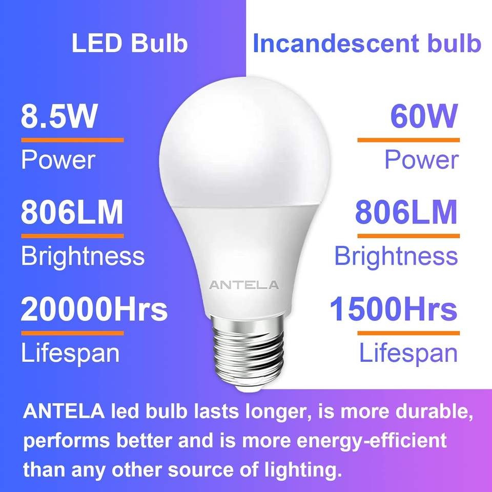 Antela Led Bulb E27 8.5W 806Lm Cool White 6500K High CRI 80+ Plastic A19 Long Life 25000H Ce Certified