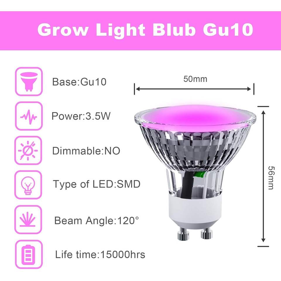 Lampadina LED per Coltivazione Antela GU10 3.5W, Spettro Completo, Dimmerabile, Angolo di Illuminazione 20 Gradi, Garanzia 2 Anni per Crescita Piante da Interno