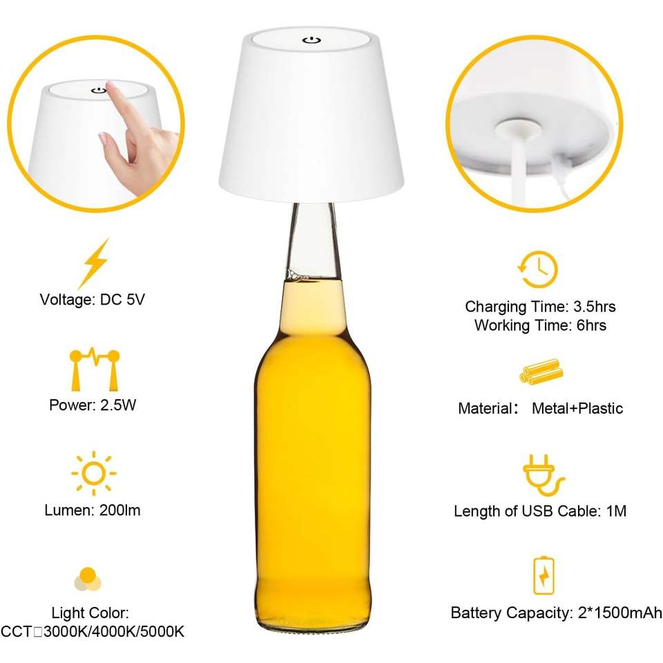 Antela Plastic Desk Lamp Led Touch Control 3000K 4000K 5000K Rechargeable Battery Operated White Shade Minimalist Design