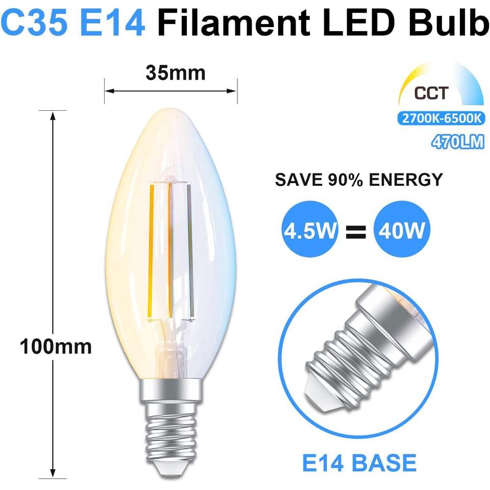Lampadina LED Intelligente Antela E14 4.5W 470Lm Dimmerabile da Bianco Caldo a Bianco Freddo Compatibile con Alexa Alimentazione AC