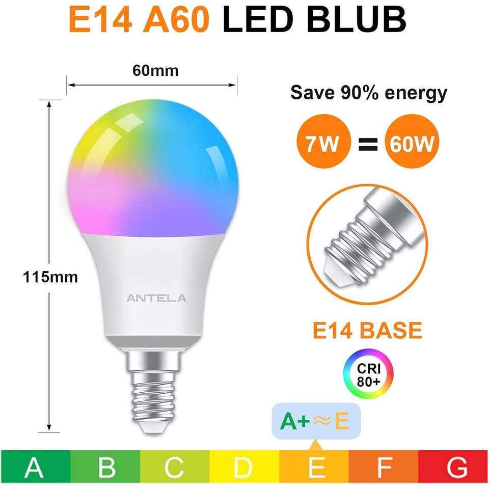 Antela Smart Led Bulb E14 8W AC Powered Wifi Alexa DimmableRgb White Light A19 806Lm 60W Equivalent
