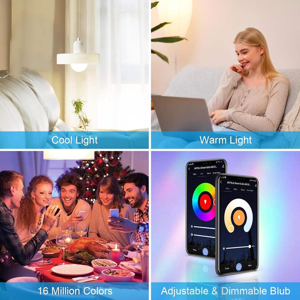 Antela Smart Led Bulb E27 4.9W Wifi DimmableRgb Color Changing White Light For Home Automation