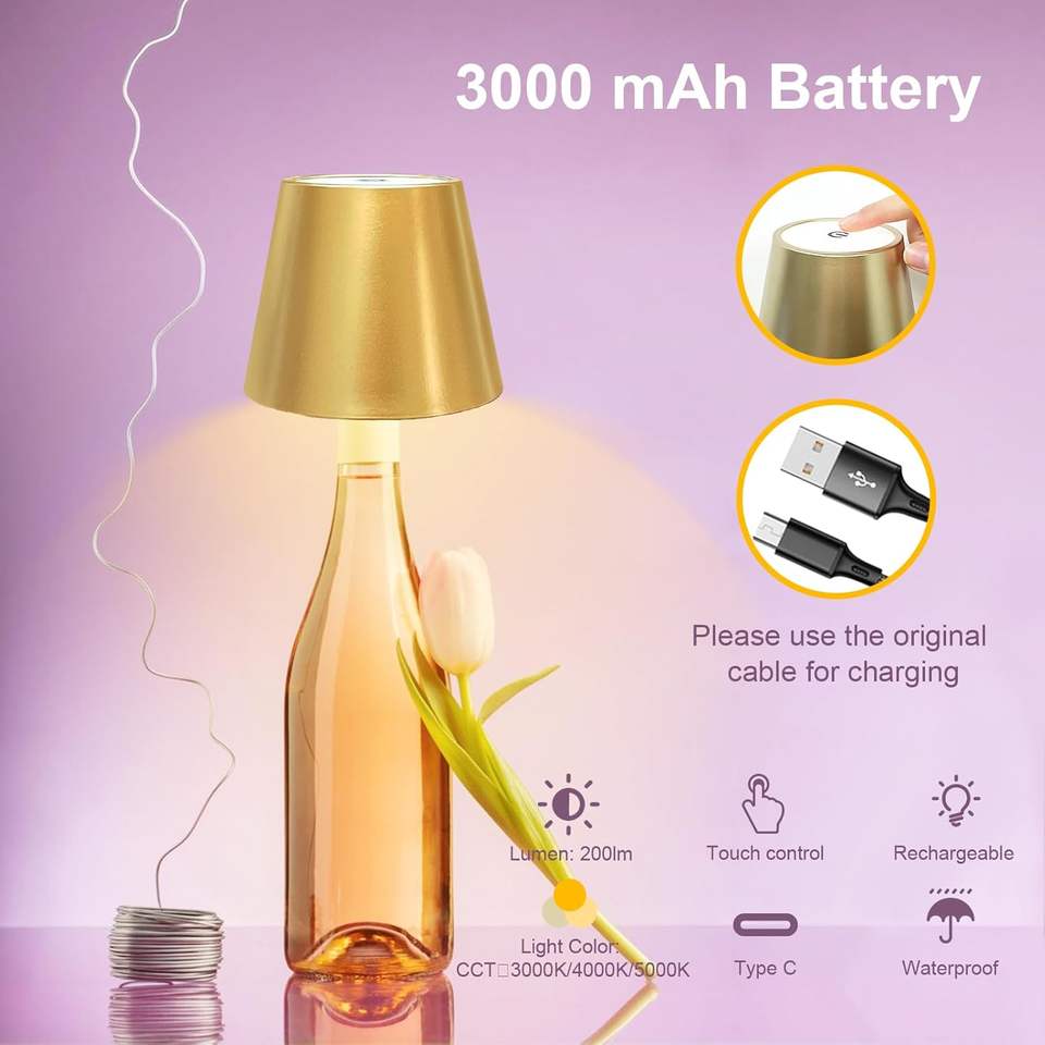 Antela Table Lamp Led Rechargeable Portable Touch Dimmable 3000K 4000K 5000K Gold Shade 11x11x36 Cm
