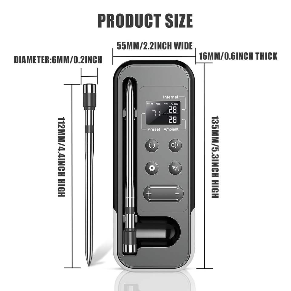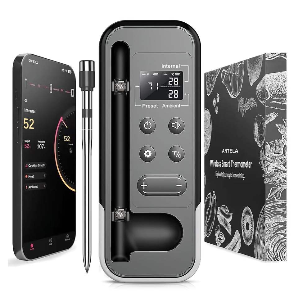 Antela Wireless Meat Thermometer Bluetooth LCD Display App Control IP67 Waterproof Cooking Tool