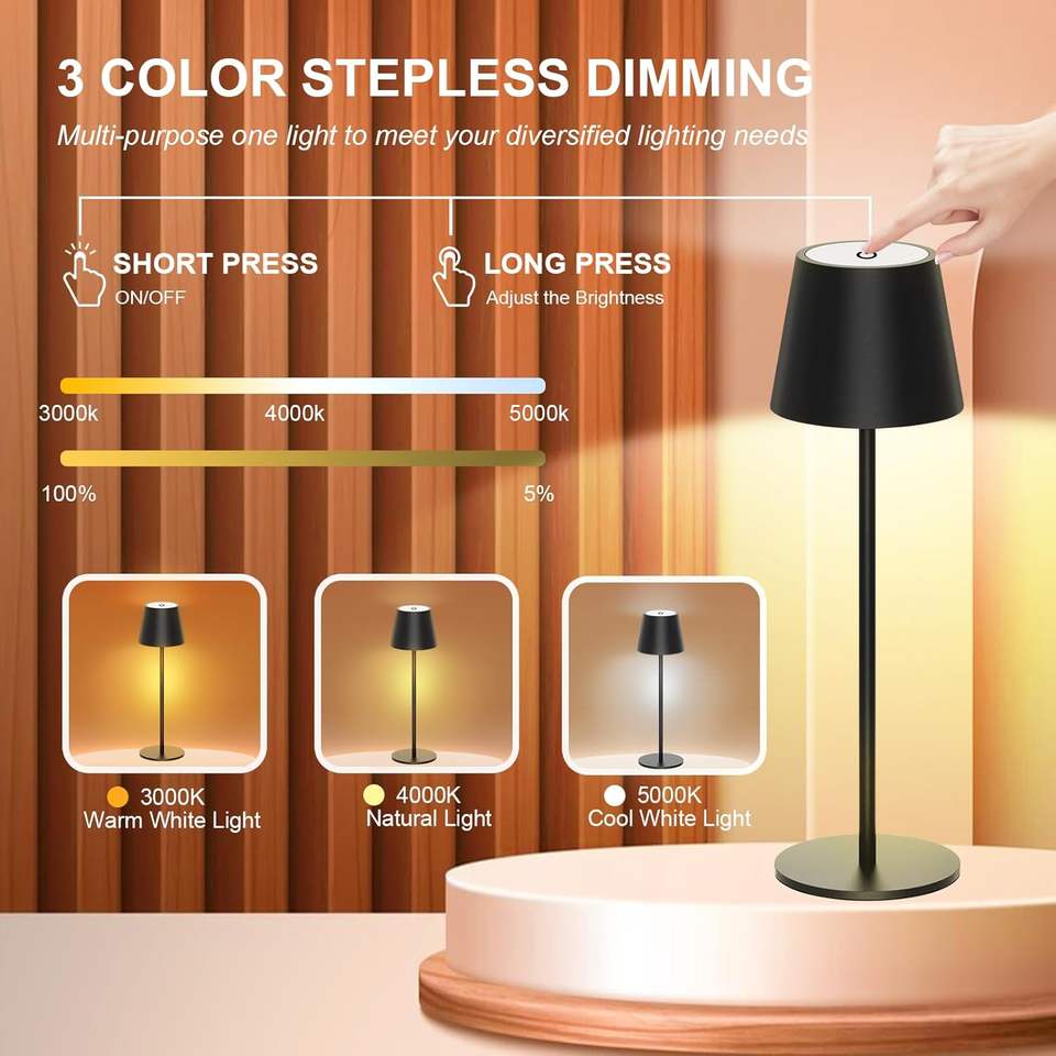 Antela Wireless Table Lamp Led Touch Control Dimmable Battery Powered Black 11x11x36 Cm With Usb C Charging For Desk Use