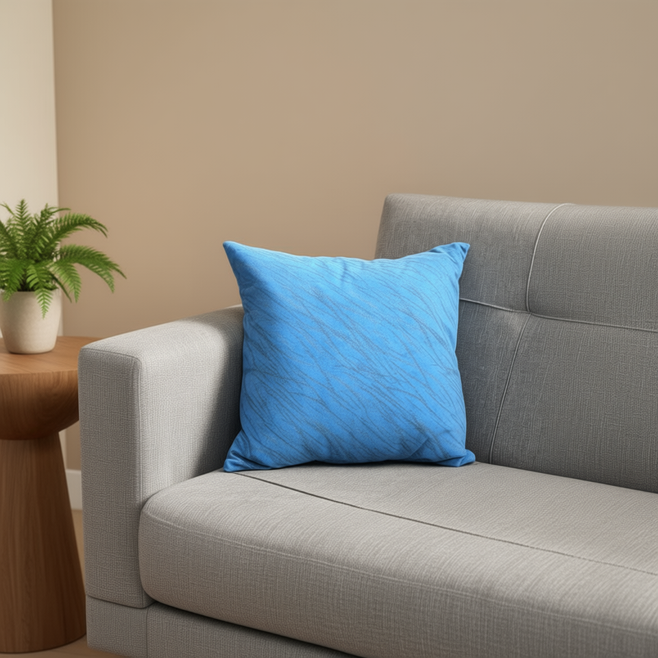 Antelina Sea Blue Striped Suede Pillow 45*45 Cojin with Estampado Design