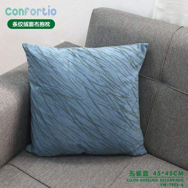 Antelina Stripe Suede Cloth Pillow Peacock Blue 45*45 Seat Cushions & Pillows Product