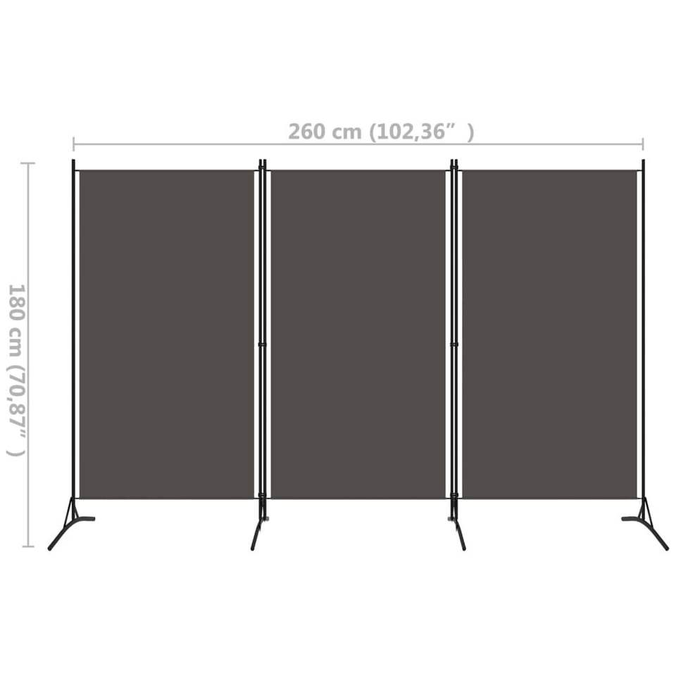 Anthracite 3-Panel Room Divider 102.4"x70.9" Fabric Screen & Room Divider