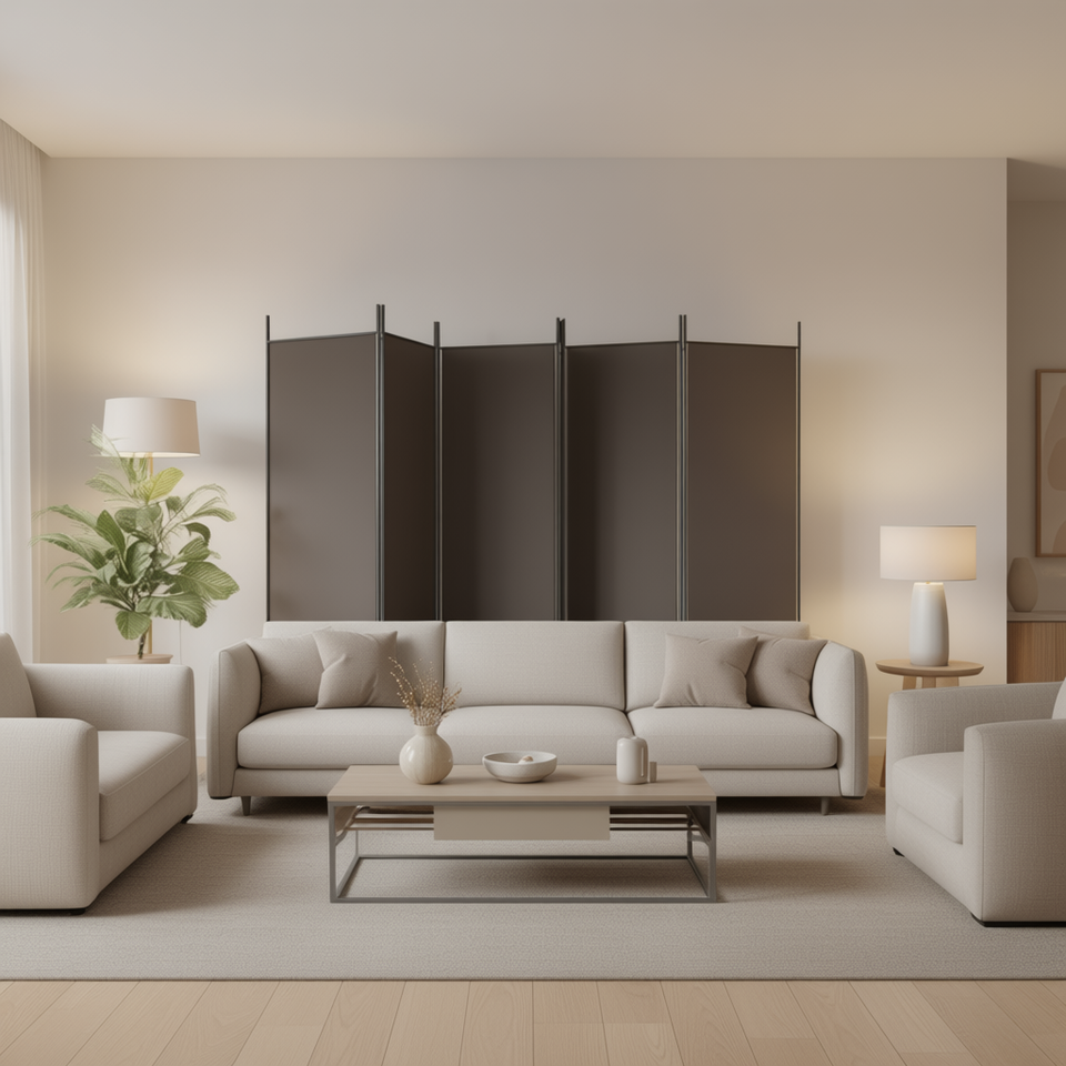 Divisorio in Metallo e Tessuto a 6 Pannelli Antracite 300x220 cm - Schermo e Separatore Multifunzionale