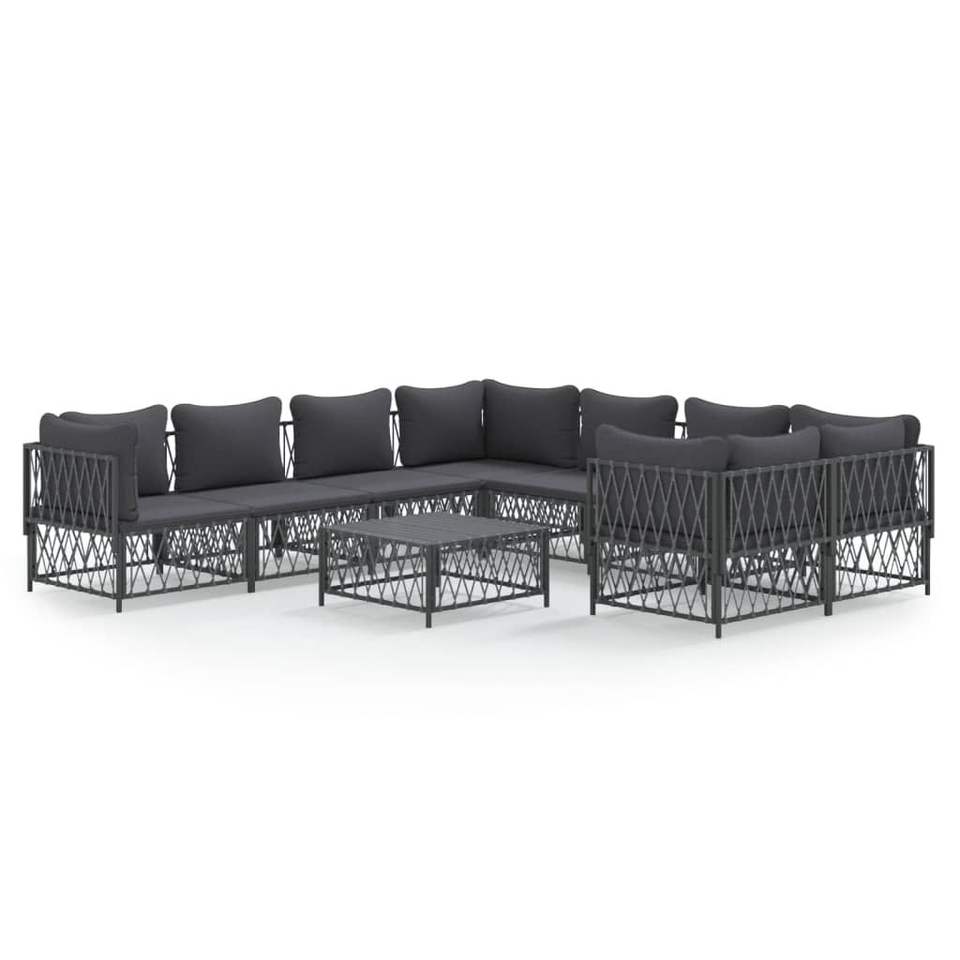 Set da Giardino Modulare in Tessuto Intrecciato Antracite, 9 Pezzi