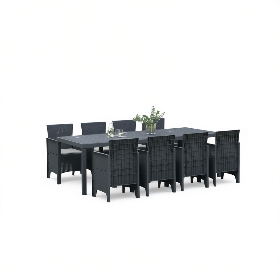 Set da Pranzo da Giardino in Polipropilene Antracite 9 Pezzi, Resistente alle Intemperie, Arredamento da Esterno dal Design Contemporaneo