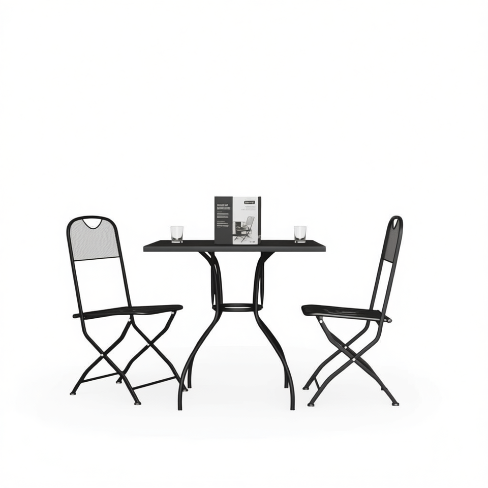 Set da Pranzo da Giardino Pieghevole Compatto Antracite, Elegante Arredamento da Esterno in Rete Metallica, 2 Posti con Telaio in Acciaio