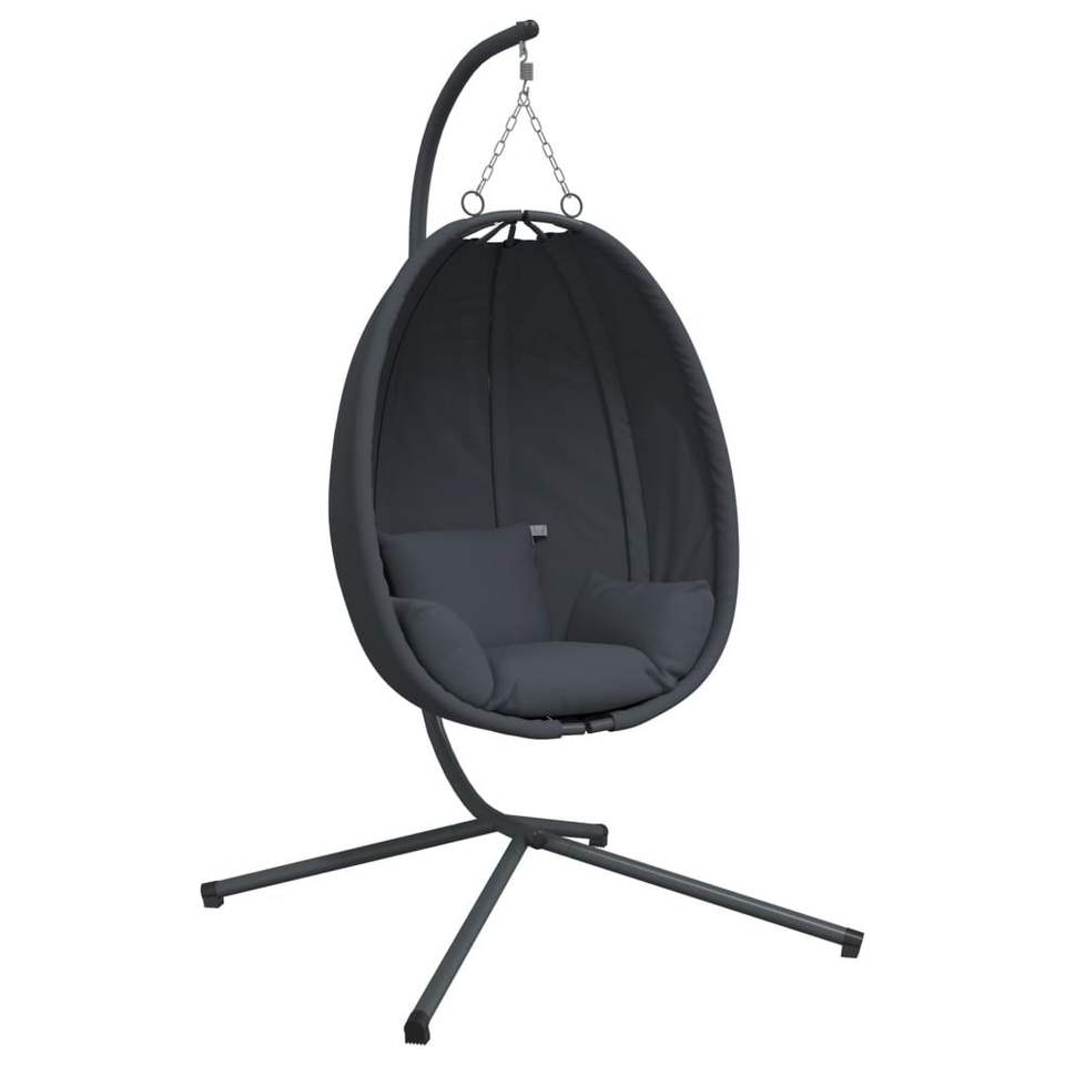 Tessuto antracite e acciaio appeso uovo sedia con Stand elegante giardino