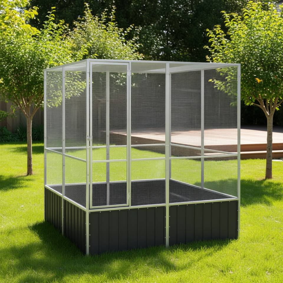 Anthracite Galvanized Steel Bird Cage 84.1x85.6x83.3 Outdoor Durable Modern Rectangle Bird Supplies