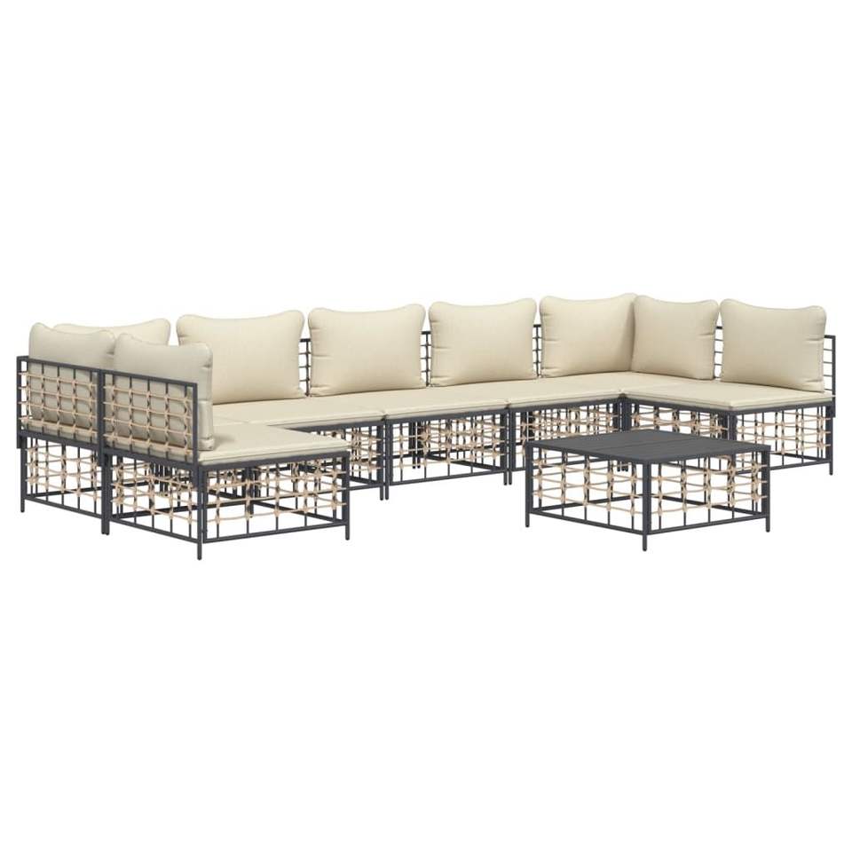 Set Lounge da Giardino Antracite 6 Posti in Rattan con Telaio in Acciaio, Resistente alle Intemperie, Arredamento da Esterno dal Design Contemporaneo