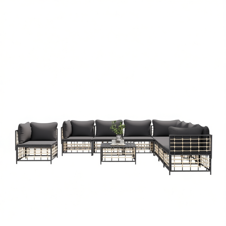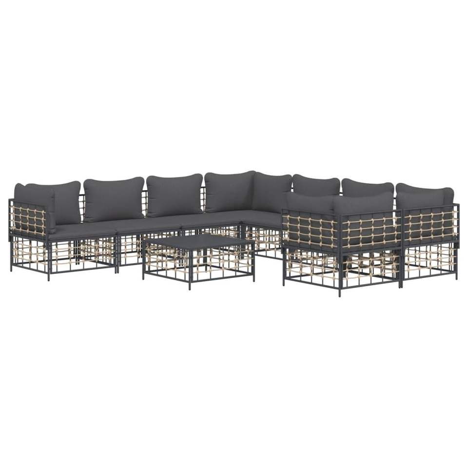 Set Lounge da Giardino Antracite da 9 Pezzi, Mobili da Esterno in Rattan con Struttura in Metallo, Design Contemporaneo per Intrattenimento all'Aperto