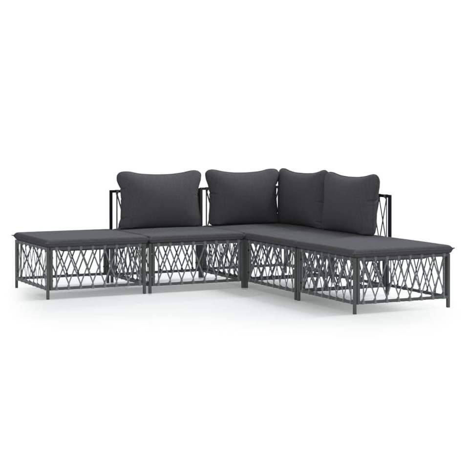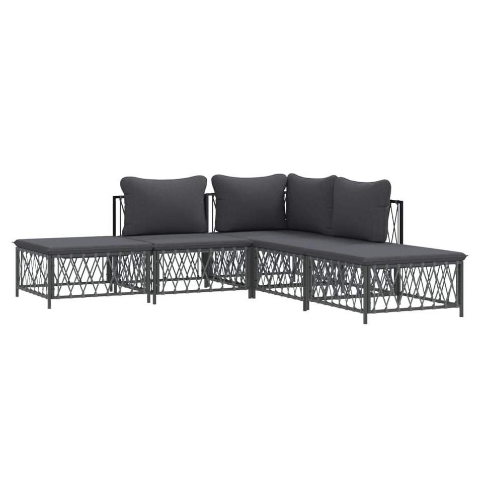 Set Lounge da Giardino Antracite con Struttura in Metallo e Cuscini, Arredamento Esterno Contemporaneo 4 Posti