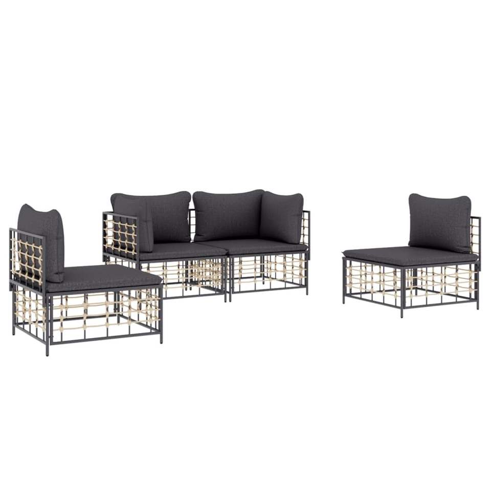 Set Lounge da Giardino Antracite 4 Posti con Struttura in Acciaio - Arredamento Esterno Contemporaneo