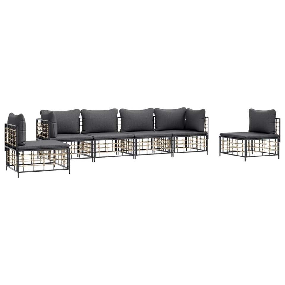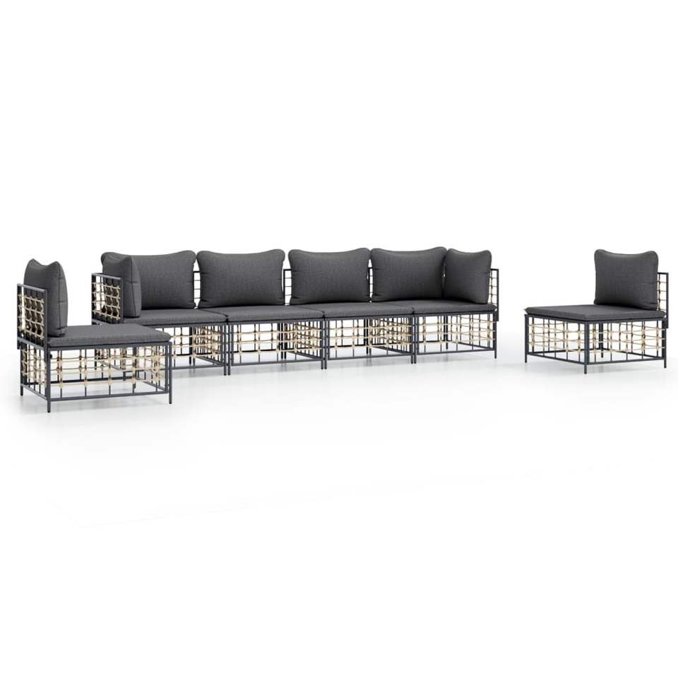 Set Lounge da Giardino Antracite 6 Posti in Rattan con Struttura in Metallo, Arredamento da Esterno dal Design Contemporaneo