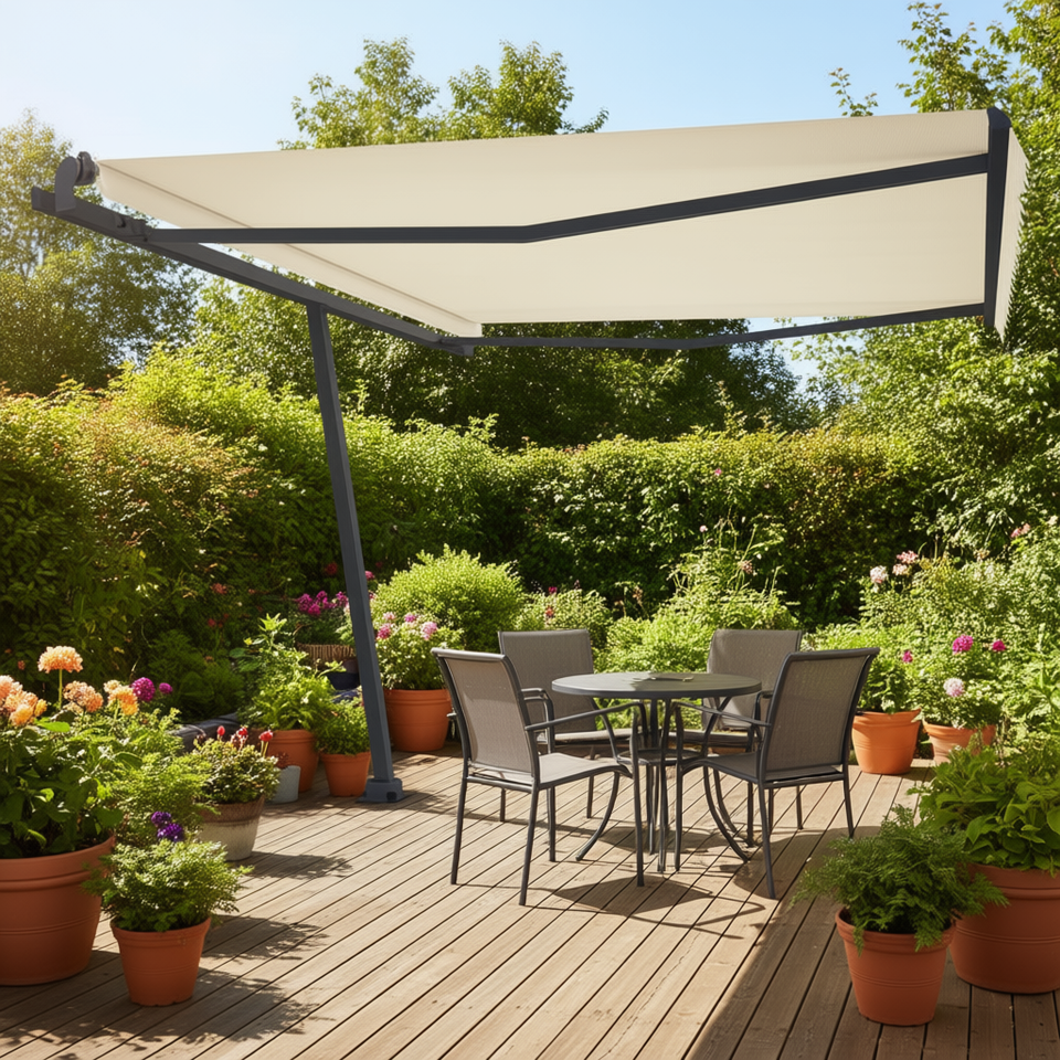 Anthracite Iron Awning 177.2x96.5 In Wall Mounted Retractable Patio Shade Outdoor Cover Modern Style Manual Operation
