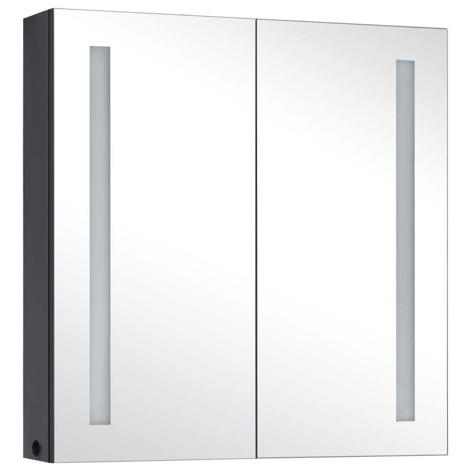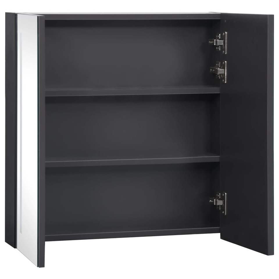 Mobile da Bagno in MDF Antracite con Specchio LED, Finitura in Melamina e Frontale in Vetro Medio